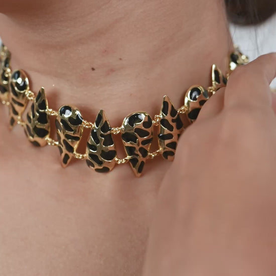 Material : Anti-Tarnish | Black Enamel | 22 Ct Gold Coated | Textured Brass