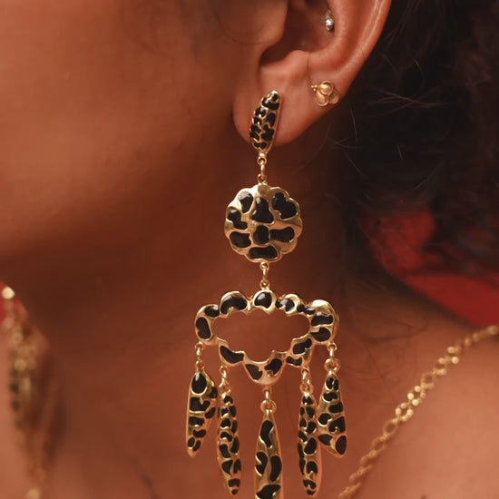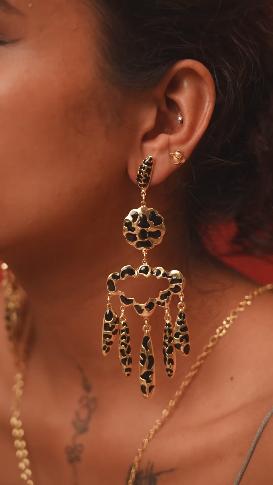 Sassy and unapologetic — these 22ct gold plated black enameled scratch-detailed brass earrings add instant attitude. Style with denim minis, slick buns, and your wildest grin. |