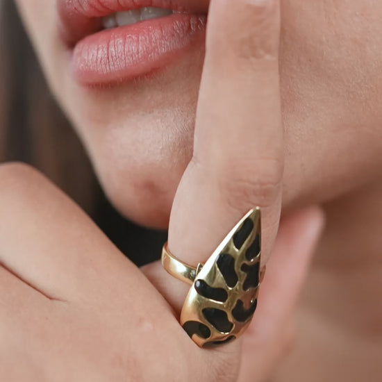 Power in every flick — this 22ct gold plated black enameled brass sharp piece turns casual fits into striking statements instantly.
