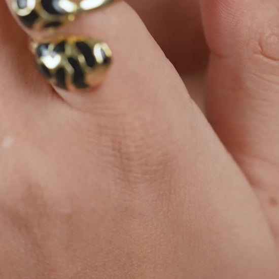 Say it without words — this 22ct gold plated black enameled brass bold black ring adds flirty edge to wine nights and power poses.