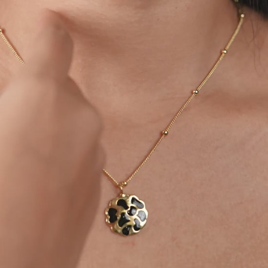 Let your wild side glow — pair this 22ct gold plated brass pendant with silky tops and gold-dusted skin and glow the parties.