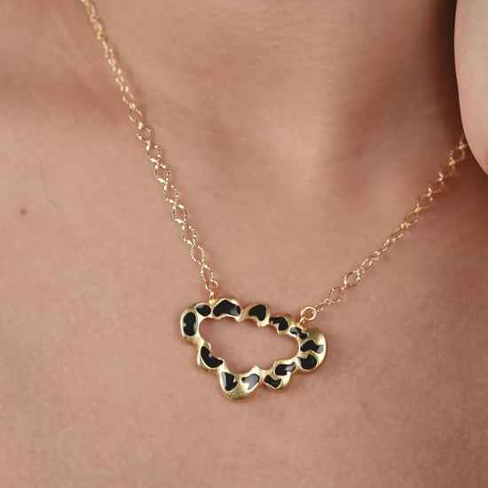 Untamed elegance — this 22ct gold plated brass pendant pairs beautifully with high collars and wild midnight moods. |