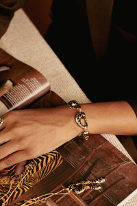 Statement chains dipped in dark enamel — made to shine under strobe lights. Pair this 22ct gold plated brass dangling earrings with slick buns, leather jackets, and unapologetic charm. |