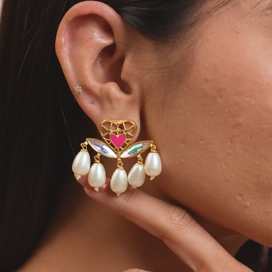 | All My Heart Earrings showcases layered heart‑motif construction, premium Swarovski crystals, and a whimsical couture energy vibe. Designed for made for romantic moments, parties and festive styling, this piece adds expressive charm, color, and personality to every look. |