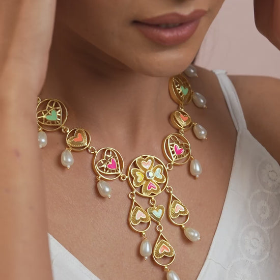 | All My Tomorrows Necklace showcases premium Swarovski crystals, vibrant multicolor enamel detailing, and a cinematic romance vibe. Designed for perfect for weddings, date nights and celebrations, this piece adds expressive charm, color, and personality to every look. |