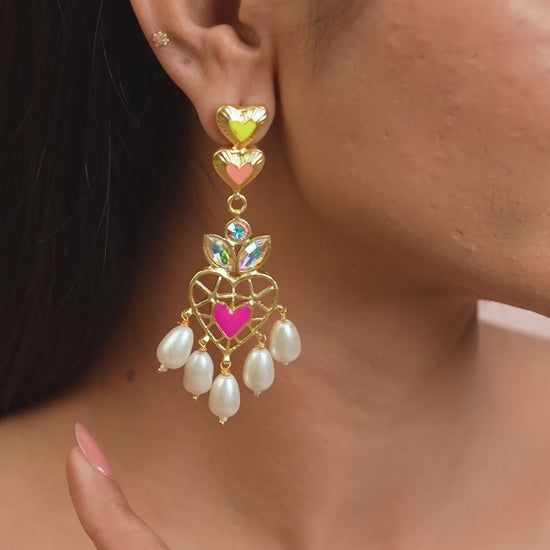 | Call It Love Earrings showcases vibrant multicolor enamel detailing, premium Swarovski crystals, and a Gen‑Z boldness vibe. Designed for ideal for vacations, sundowners and destination weddings, this piece adds expressive charm, color, and personality to every look. |