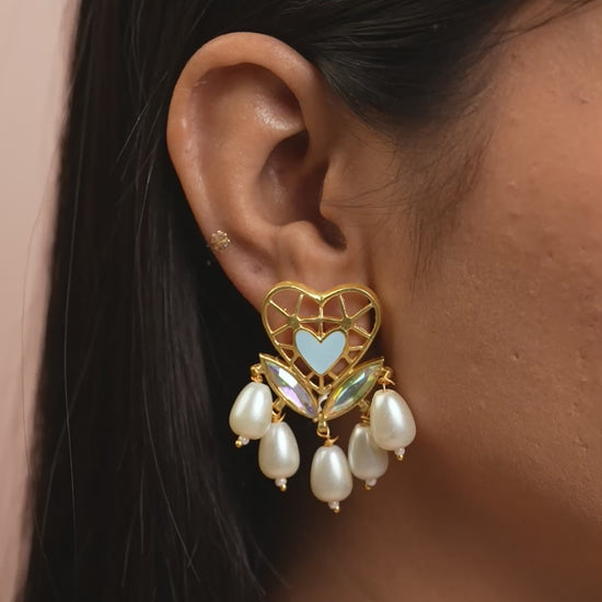 | Falling Slowly Earrings showcases vibrant multicolor enamel detailing, premium Swarovski crystals, and a modern playful elegance vibe. Designed for styled best with Indian fusion fits and modern silhouettes, this piece adds expressive charm, color, and personality to every look. |