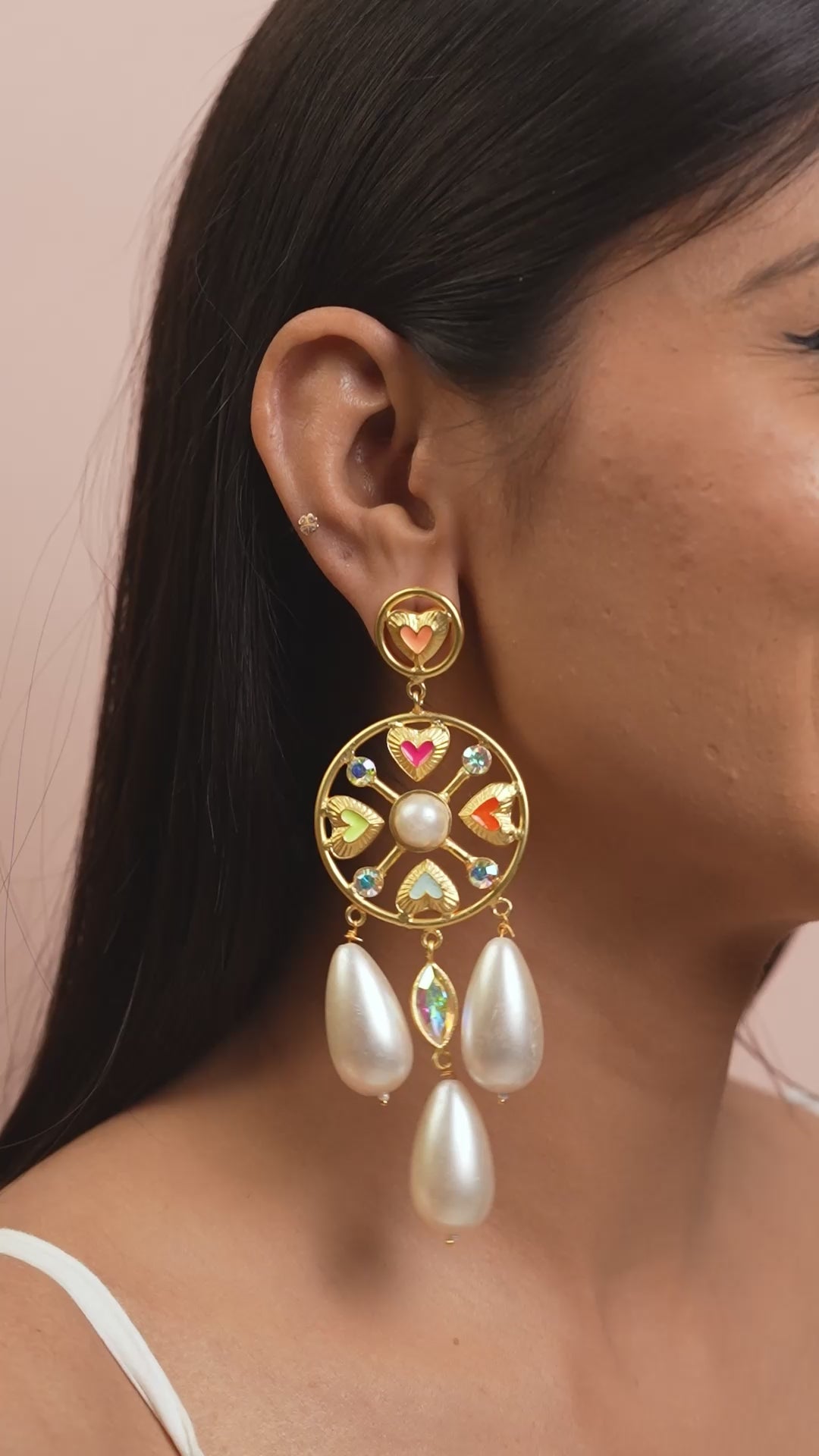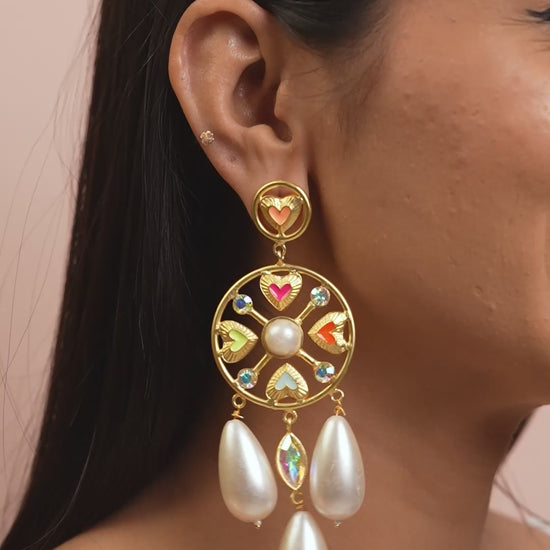 | Full of Feelings Earrings showcases hand‑crafted 22ct gold‑plated brass, layered heart‑motif construction, and a whimsical couture energy vibe. Designed for ideal for vacations, sundowners and destination weddings, this piece adds expressive charm, color, and personality to every look. |