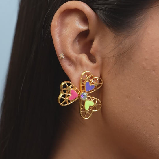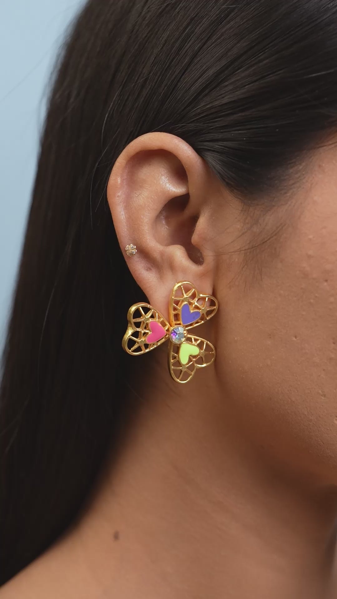 | Hold Me Closer Earrings showcases vibrant multicolor enamel detailing, hand‑crafted 22ct gold‑plated brass, and a high‑impact color story vibe. Designed for perfect for weddings, date nights and celebrations, this piece adds expressive charm, color, and personality to every look. |