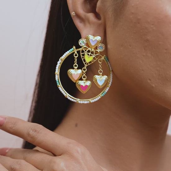 | Memory Lane Earrings showcases lightweight feel with high shine, layered heart‑motif construction, and a cinematic romance vibe. Designed for perfect for weddings, date nights and celebrations, this piece adds expressive charm, color, and personality to every look. |