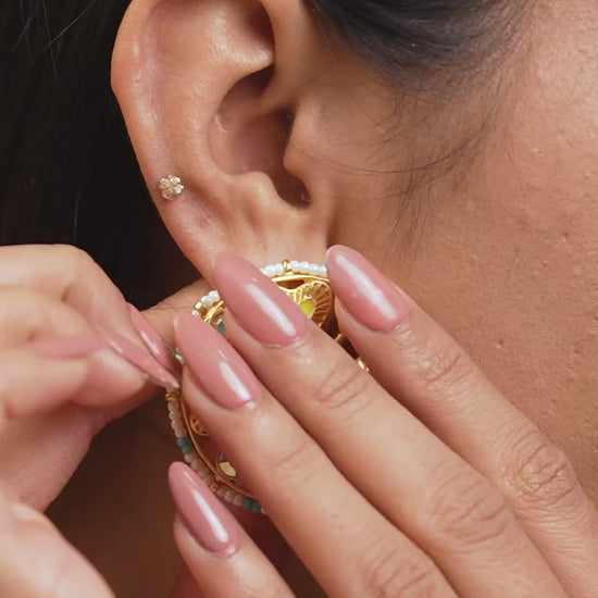 - Plating: Our pieces are flash-plated and should be kept away from moisture, perfumes, and lotions to preserve their shine.
