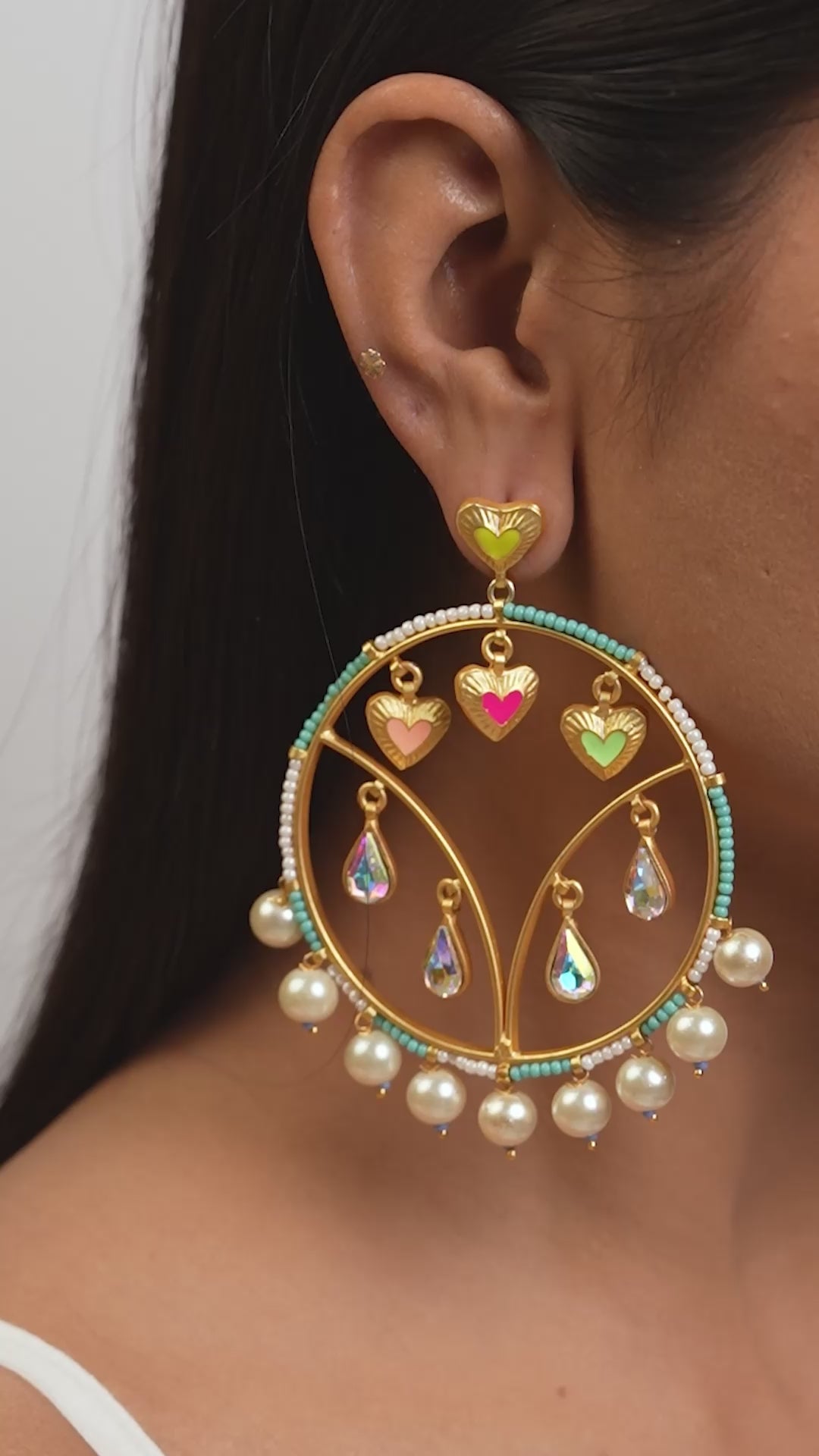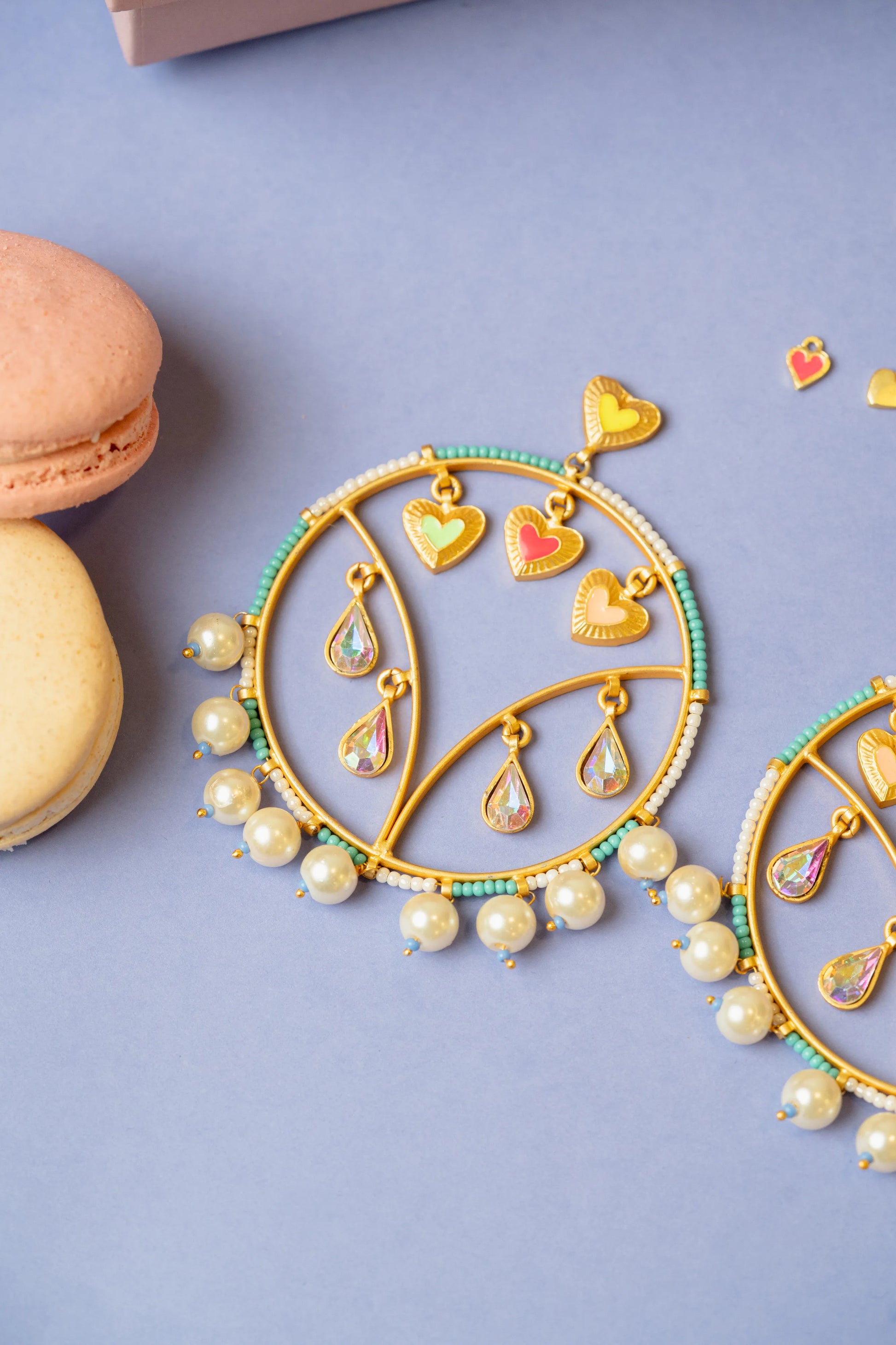 | The Way You Looked At Me Earrings showcases layered heart‑motif construction, hand‑crafted 22ct gold‑plated brass, and a cinematic romance vibe. Designed for made for romantic moments, parties and festive styling, this piece adds expressive charm, color, and personality to every look. |
